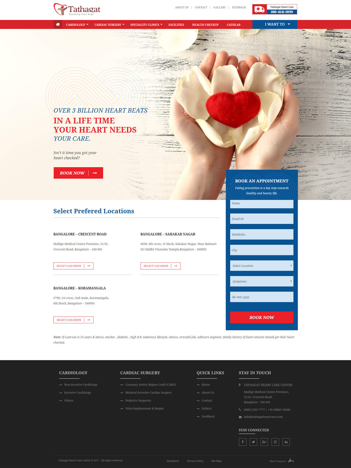 Tathagat Heart Care Center is a premium cardiac care centre of excellence in Bangalore. Their motto is to provide the best heart care service to the people of Karnataka especially in and around Bangalore. We were tasked to develop a brand new brand identity design: which complements the brand name “Tathagat”, their host of heart care services and make them standout as a trustworthy heart care services’ provider.